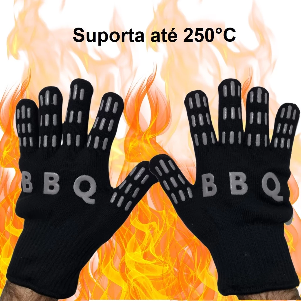 Luva Churrasqueiro Térmica Churrasco Cozinha Ultra Resistente Em Silicone E Tecido