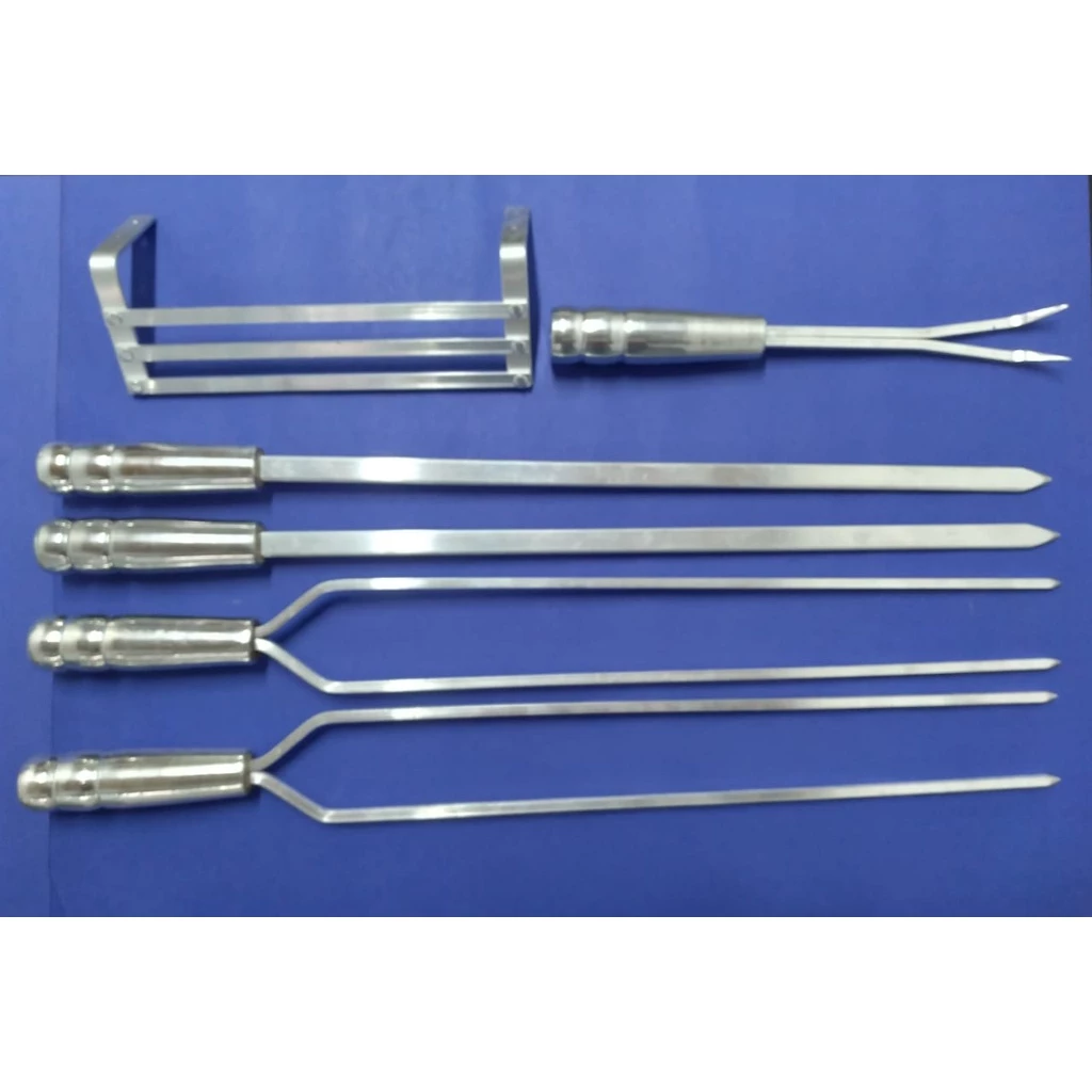 Kit 4 espetos de alumínio 50 cm + Suporte para espetos + garfo