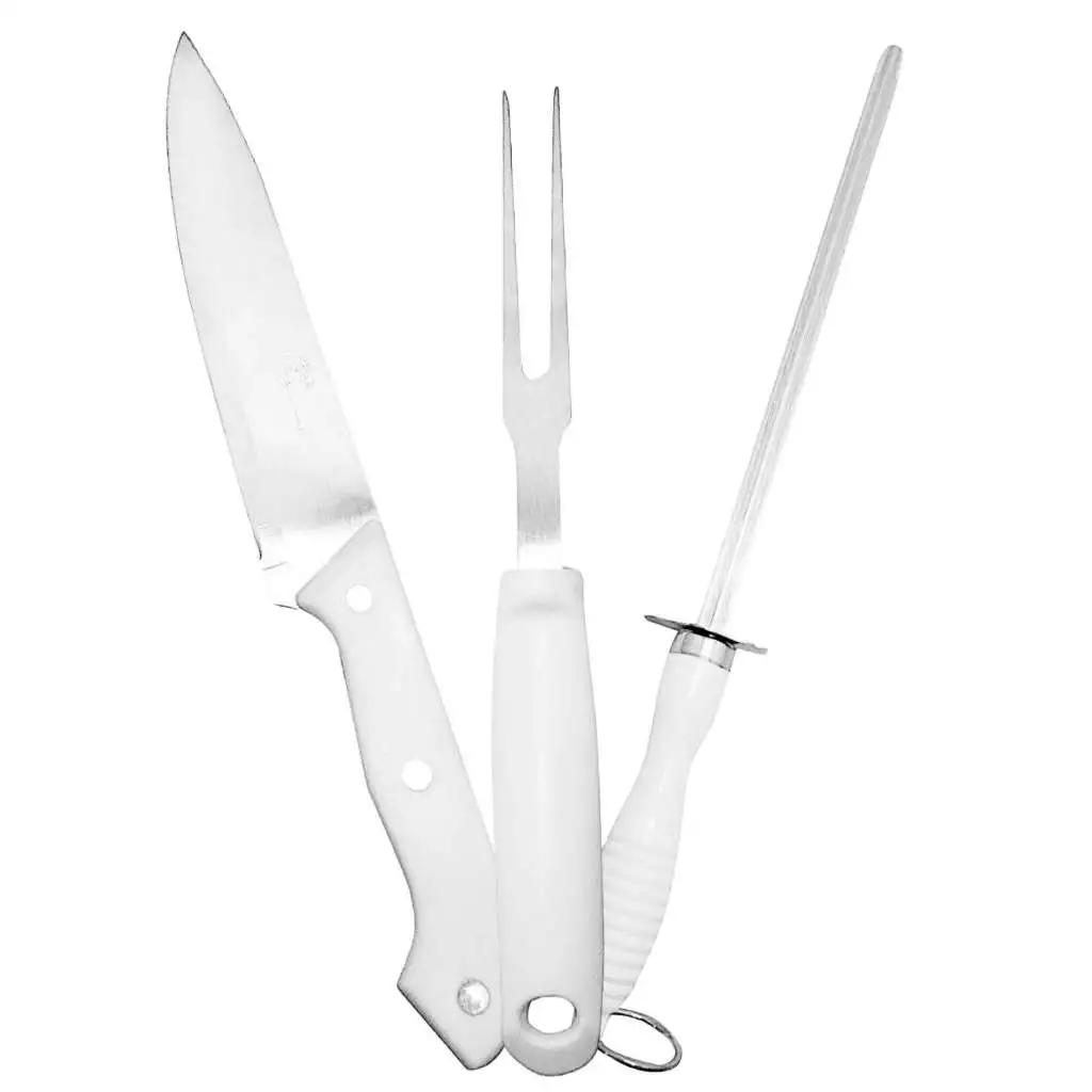 Kit Para Churrasco Festas Alta Qualidade Aço Inox Pacote Com 3 Peças