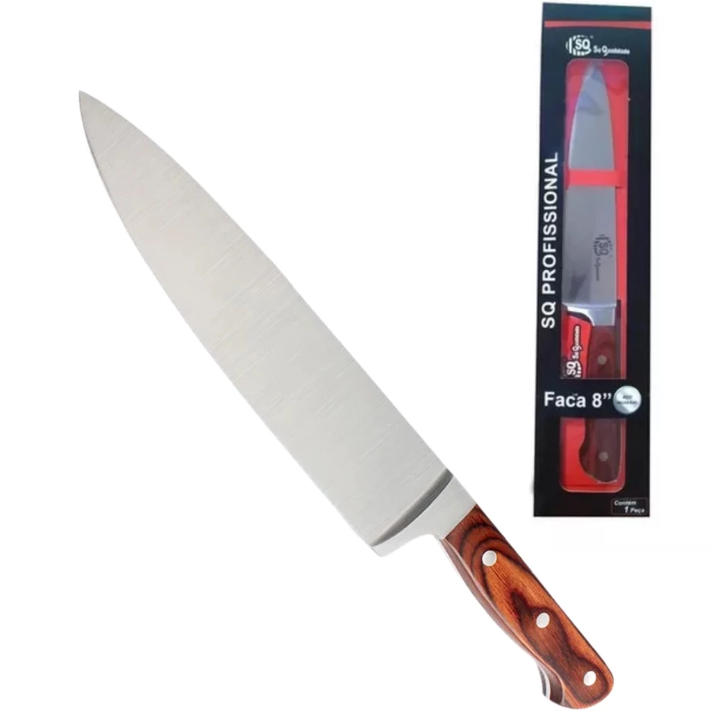 Faca Profissional Afiada Cabo Madeira Cozinha Cozinheiro Ergonômica Confortável Design Exclusivo
