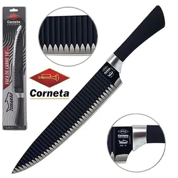 A faca Top chef Shark 10 Original possui lâmina antiaderente com capacidade de deslizamento reduzindo o esforço e evitando que seu sushi, peixe, carne ou legume fique grudado durante o corte. Fabricado em aço inox, resina termoplástica, oferece resistência e durabilidade, cabo soft touch, próprio para manuseio diário na cozinha garantindo conforto e segurança na hora do manuseio.