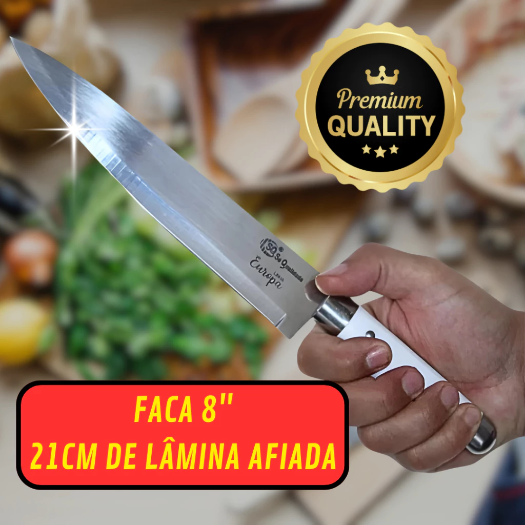 Kit 3 Faca Aço Inox 8 Polegadas 34cm Line Utensilio Carnes Legumes e Frutas Cozinha Chef 03 Unidades Descubra a Perfeição em Cada Corte com a Faca de Cozinha Premium Transforme sua experiência na cozinha com nossa faca de cozinha de aço inox premium, com cabo de borracha branco. Cada detalhe foi cuidadosamente projetado para garantir a melhor performance e durabilidade. Seja você um chef profissional ou um cozinheiro de fim de semana, esta faca será a sua aliada perfeita.