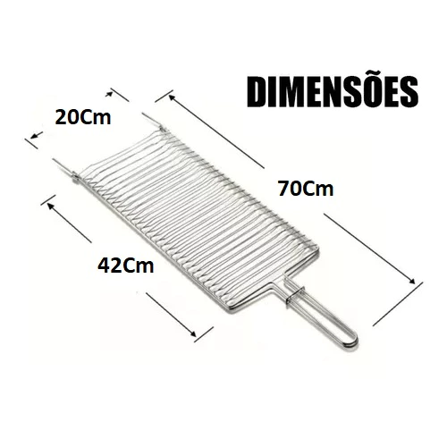 it Churrasco Grelha Dupla + 4 Espetos Cabo Madeira de 65 cm Para Peixes Carnes Frangos Linguiça Churrasco Todo bom churrasco começa por um bom acessório Grelha indispensável para seu churrasco, assado ou grelhado muito pratica para manuseio e evitando acidentes desnecessário, ao colocar o alimento dentro da grelha é somente fechar e pronto daí por diante somente será necessário virar o alimento de um lado para o outro até atingir seu ponto ideal. Ágil e pratica e muito fácil de lavar pois possui um espaçamento de 2 cm entre os vãos, podendo utilizar escovas, panos ou alguns outros utensílios. – Grelha dupla côncavo excelente para peixes, frangos e carnes diversas; – Permite virar a carne ou o peixe com muito mais facilidade na churrasqueira, evitando acidentes. CARACTERÍSTICAS Produzida com Ferro Cromado Modelo : Aramada Cabos de Ferro Cromado Excelentes espetos para churrasco, confeccionados em alumínio com cabo de madeira. Não enferrujam, são Leves e Resistentes. E o melhor, muito fácil de limpar. Para um bom churrasco, nada melhor que um espeto de qualidade!!